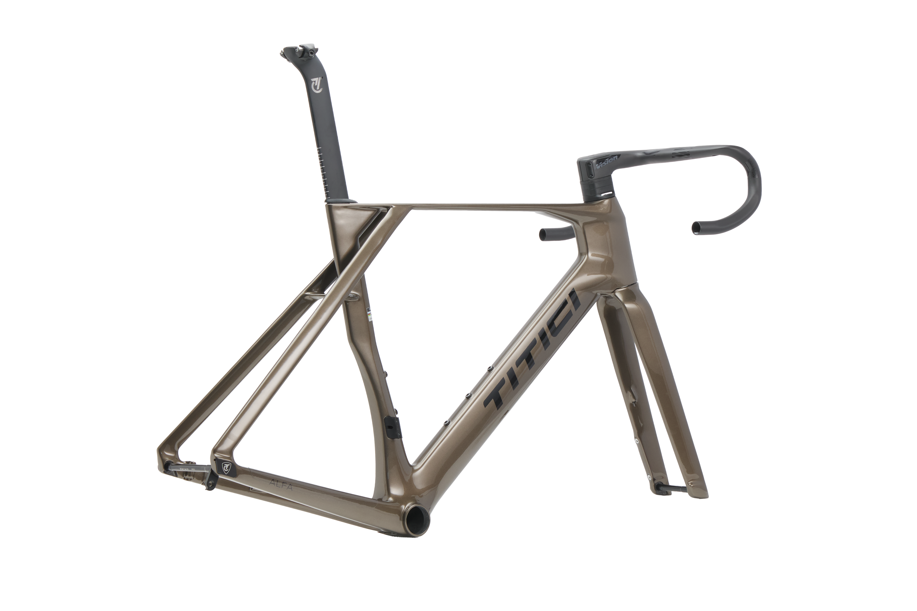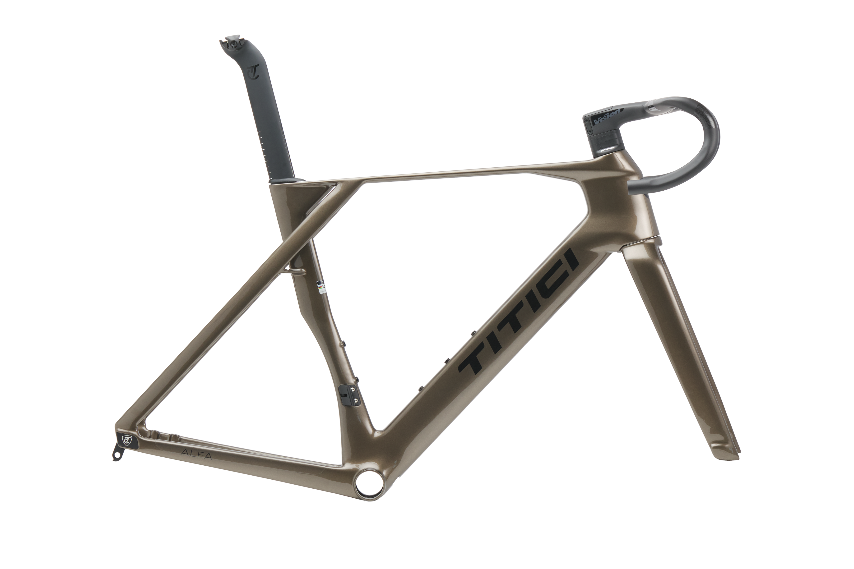 The ALFA’s carbon monocoque frame uses the EPS (Expanded Polystyrene) system for top-tier build quality. Carbon sheets are layered around a smooth polystyrene core, eliminating air bubbles and structural flaws typical of bladder systems. TITICI engineers created a true one-piece monocoque frame, molded as a single unit — a major feat given its complex geometry and unique chainstay-to-PAT tube connection.