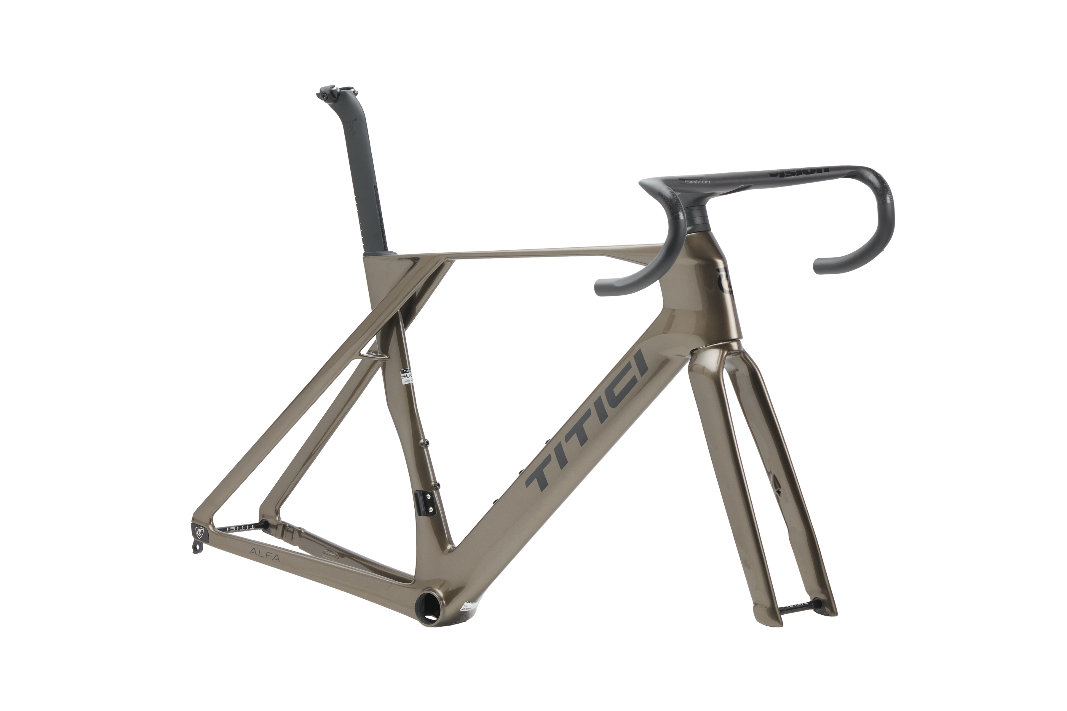 Monocoque Carbon frame + aero seatpost + Vision Metron 5D EVO handlebar