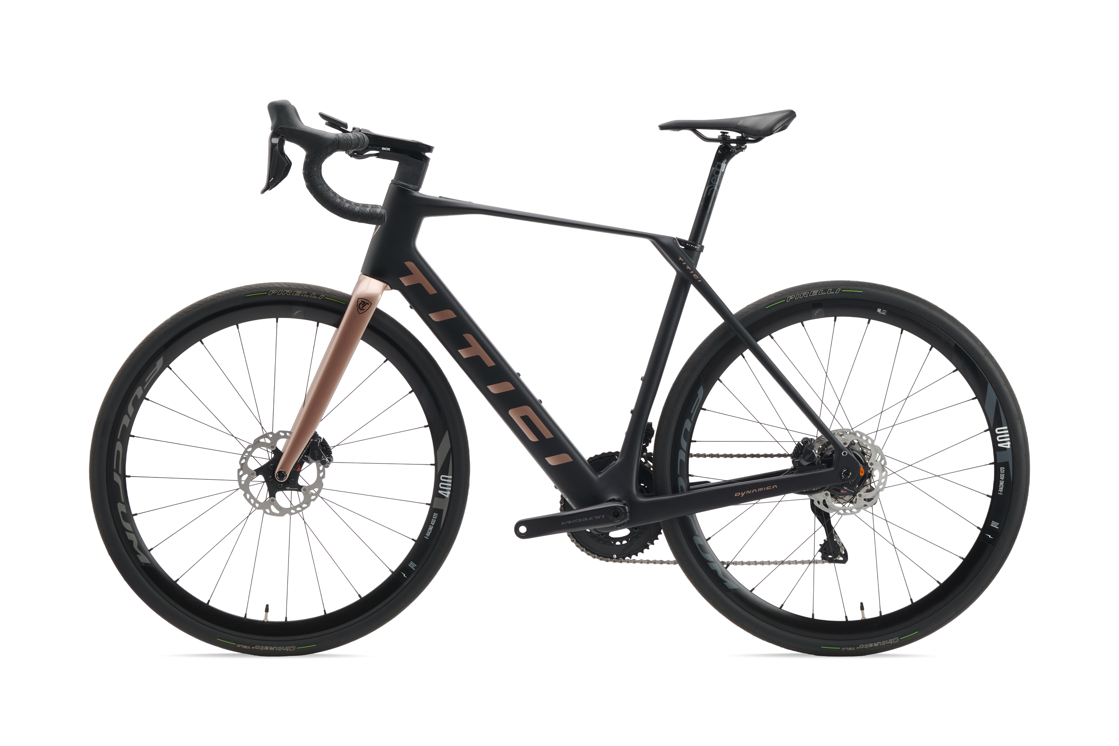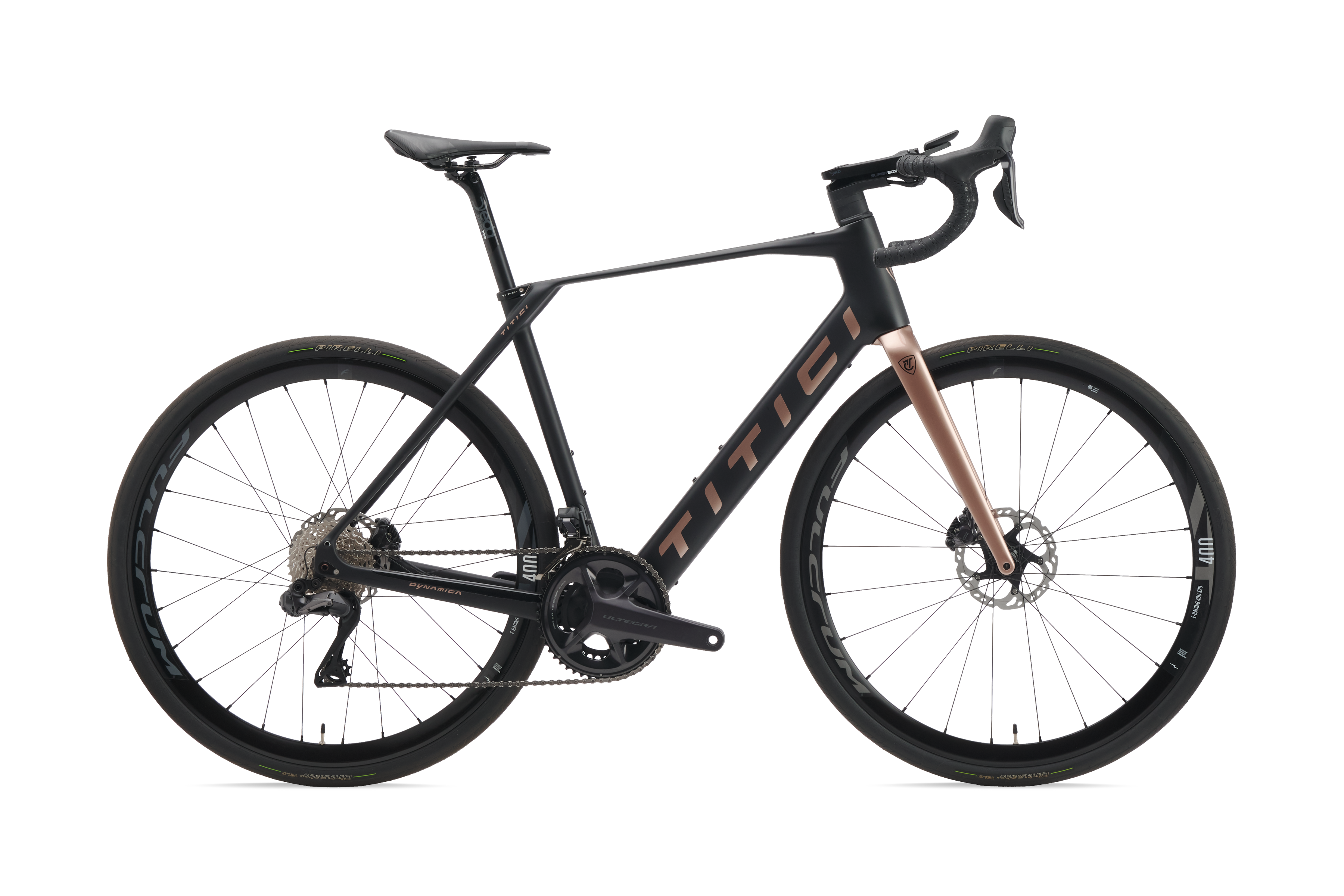 Monocoque Carbon frame + Mahle X20 + 350 Wh battery + Shimano Ultegra Di2 + Deda Superbox + Deda Zero 100 + Deda Zero 100 + Fulcrum E-Racing 400